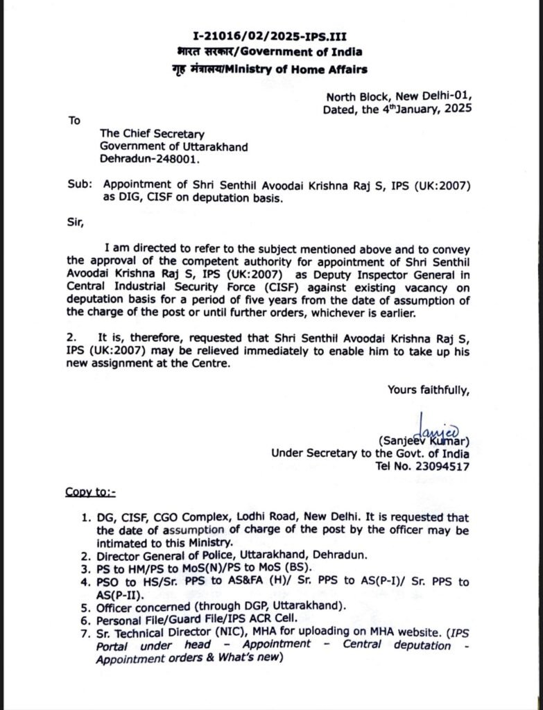 उत्तराखड गृह विभाग में तीन साल में एक ही जैसा “बलंडर” दोबारा होने से विभाग की कार्यप्रणाली सवालों के घेरे में आ गई है। यह बलंडर है या इंटरनल पॉलिटिक्स का हिस्सा ? यह जाँच का विषय है। बहरहाल आपने किसी दूसरे स्टेट में पहले शायद ही कभी ऐसा देखा और सुना होगा कि अफसरों ने सेंट्रल डेपुटेशन के लिए आवेदन भी नहीं किया और केंद्र ने थोक के भाव पोस्टिंग भेज दी।