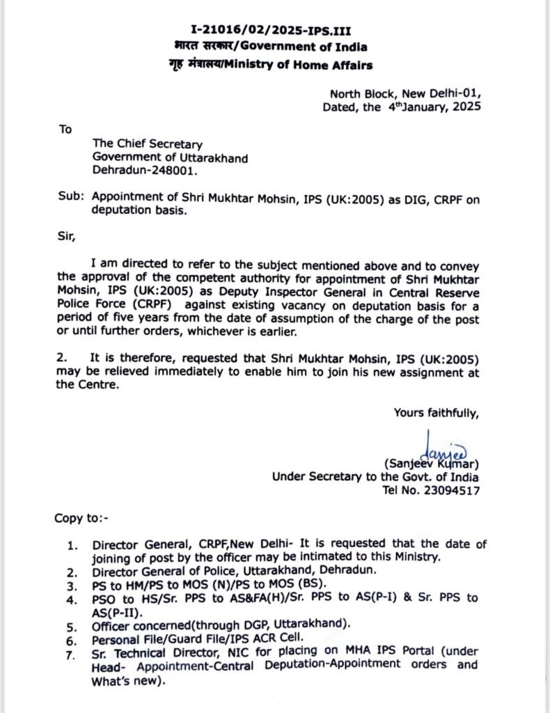 इन्होने मौजूदा डीजीपी दीपम सेठ से मुलाकात कर अपनी बात कही। डीजीपी भी हैरान थे कि बगैर सहमति या वगैर आवेदन के यह कैसे संभव है। डीजीपी में दो दिन पहले एक प्रस्ताव शासन को भेजकर आईपीएस मुख़्तार मोहसिन, नीरू गर्ग, राजीव स्वरूप और अरुण मोहन जोशी के नाम को केंद्रीय प्रतिनियुक्ति की सूची से विलोपित कराने को कहा, लेकिन आज सबेरे आठ अफसरों की सेंट्रल डेपुटेशन की चिट्ठी आ गयी।