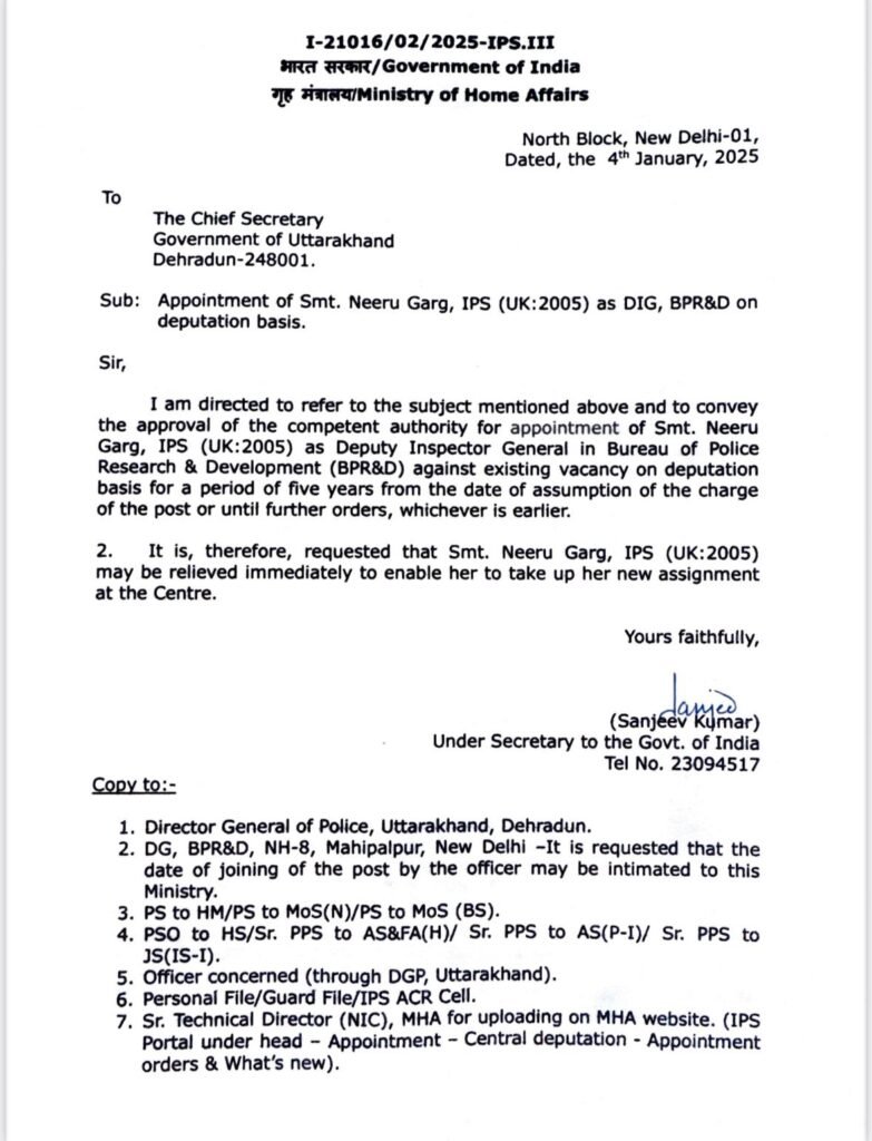 2005 और 2006 बैच के 71 अफसरों को केंद्र सरकार ने पिछले दिनों DIG से IG रैंक में प्रमोशन दिया, यानि इन अधिकारियों को IG रैंक में इंमपैनल्ड किया, इससे ये फायदा हुआ कि जब भी ये अफसर सेंट्रल डेपुटेशन पर जायेंगे तो IG के पद पर पोस्टिंग मिलेगी। इन 71 अफसरों की सूची में उत्तराखंड से मात्र दो अफसर स्वीटी अग्रवाल और रिद्धिम अग्रवाल ही केंद्र की सूची में IG बन सकी।